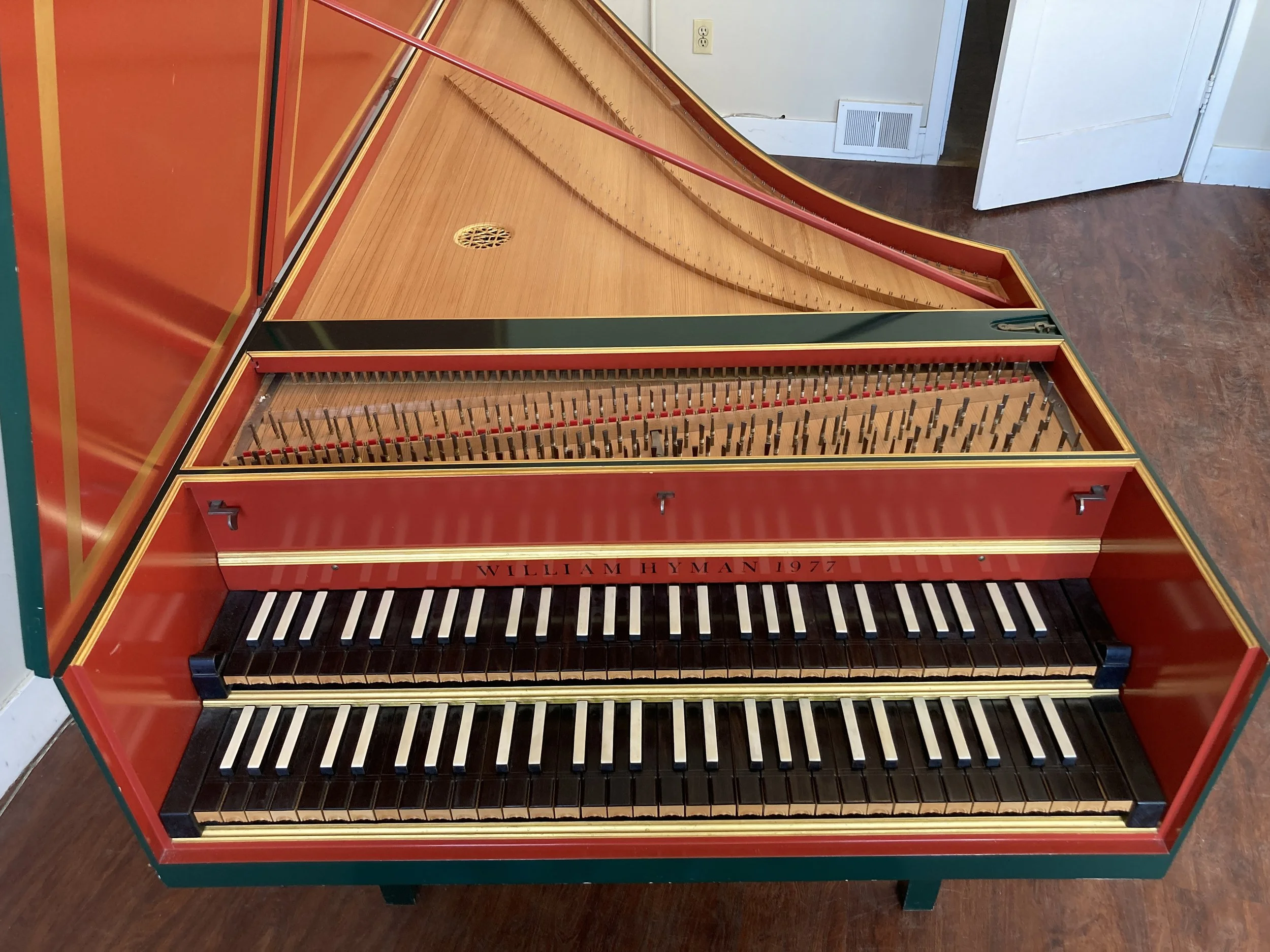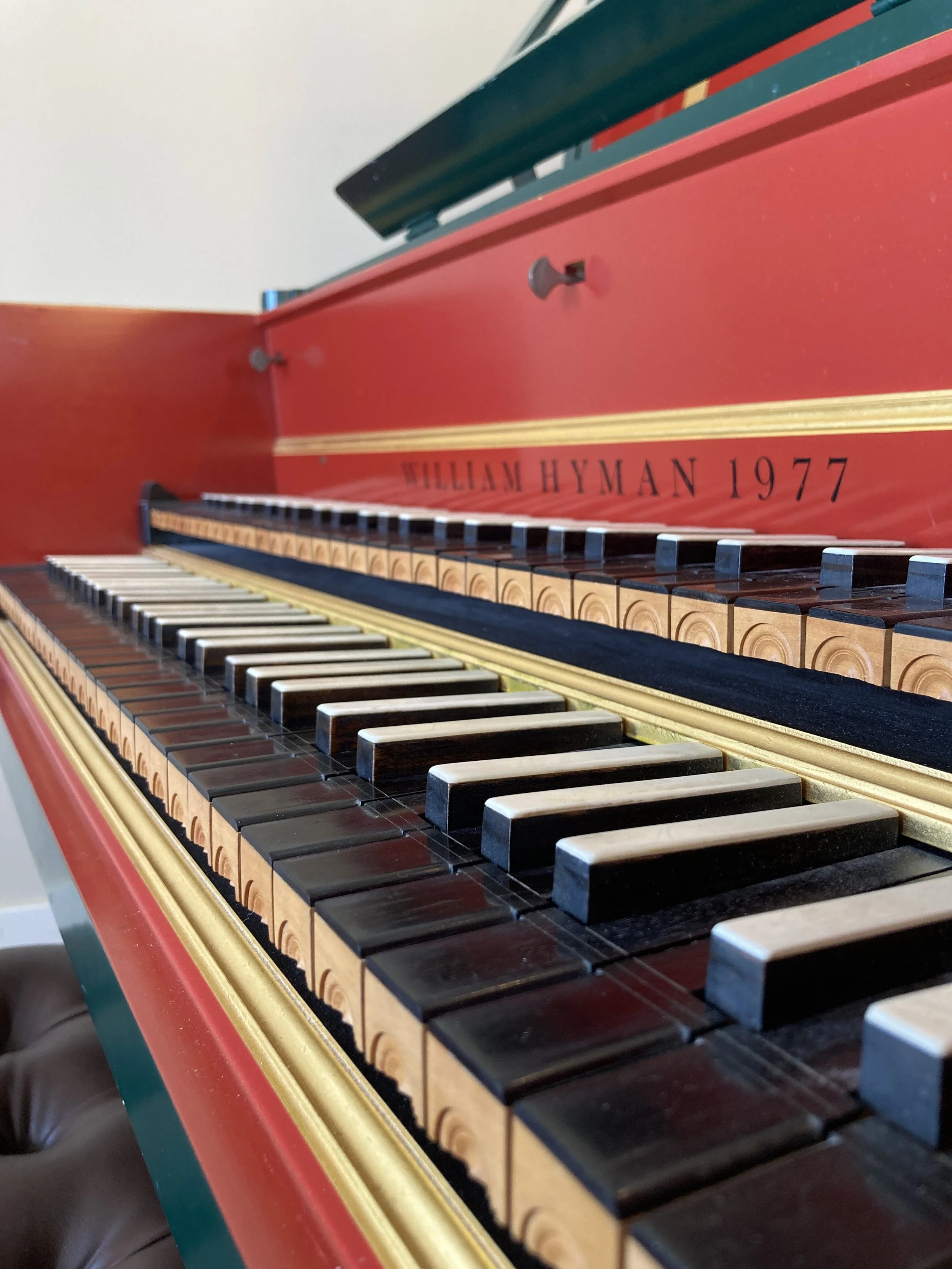 This pre-owned French Double harpsichord, designed by William Hyman, was originally built in 1977. Although Hyman passed away in 1974, his unfinished commissions were completed and delivered by David Jacques Way.