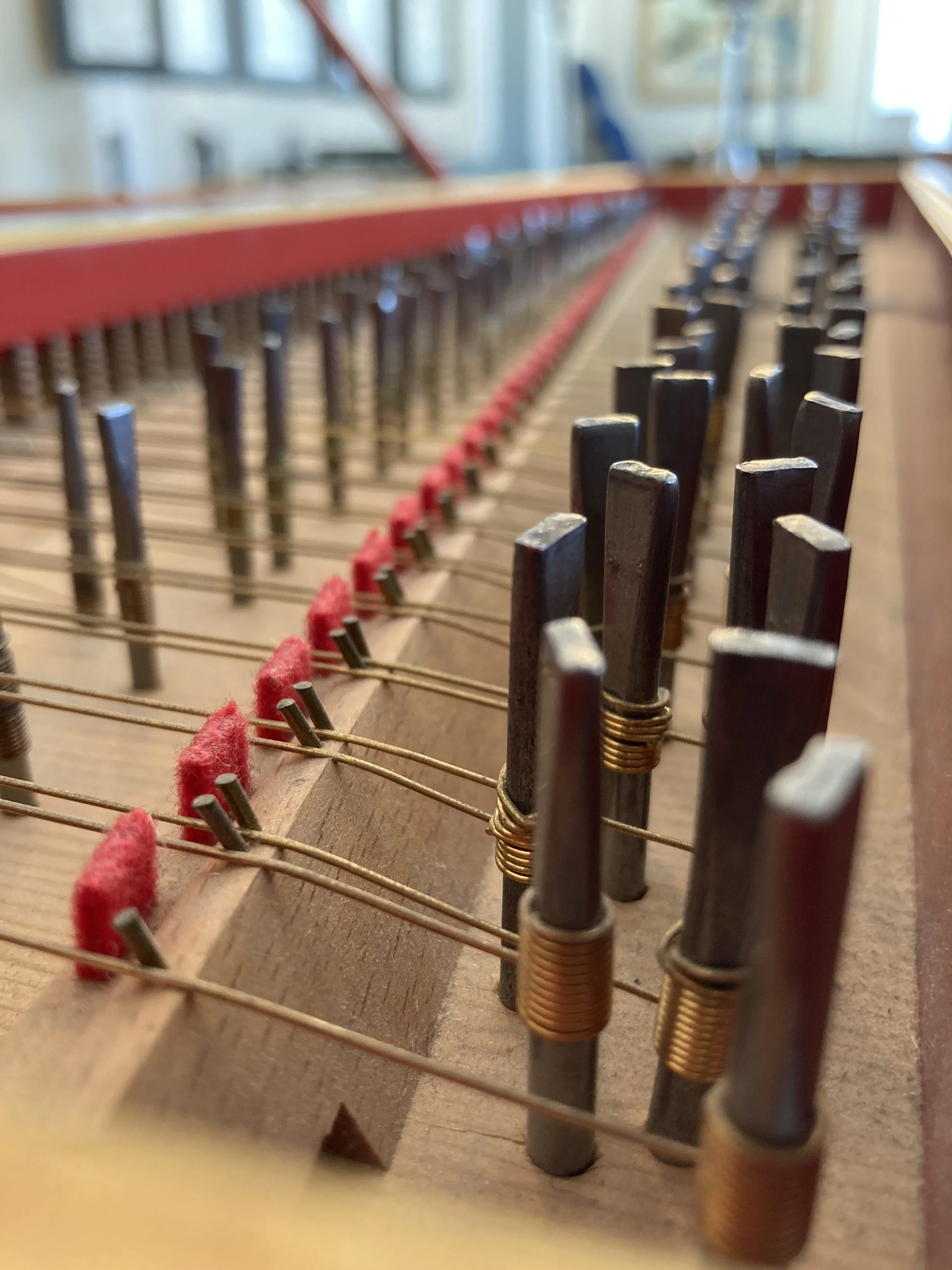 The instrument later underwent re-voicing and regulation at Harpsichord Clearing House by John Bennett, who was part of the original team that completed the instrument at the Stonington shop in 1977.